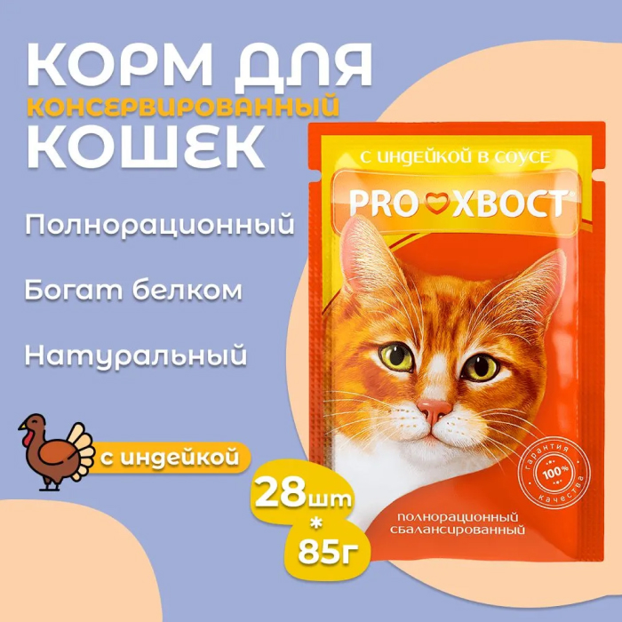 Proхвост Прохвост Корм консервированный для взрослых кошек, с индейкой в соусе.