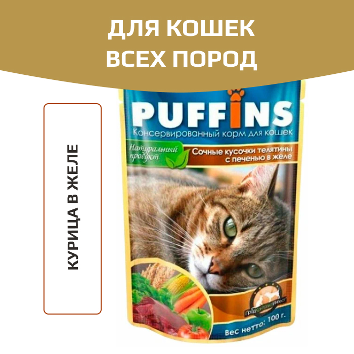 Puffins корм консервированный для кошек курица в желе.