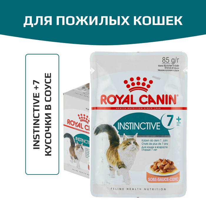 Royal Canin Instinctive 7+ пауч (кусочки в соусе) - Полнорационный влажный корм для кошек старше 7 лет.