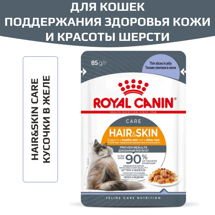 Royal Canin Hair&Skin Care корм влажный для кошек для поддержания здоровья кожи и красоты шерсти, кусочки в желе.