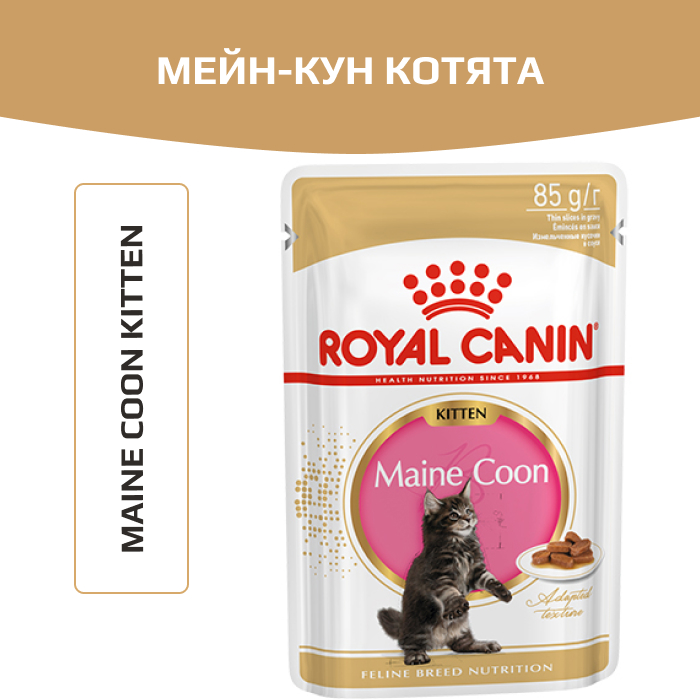 Royal Canin Kitten Maine Coon орм консервированный для котят породы Мейн-кун в возрасте до 15 месяцев (маленькие кусочки в соусе).
