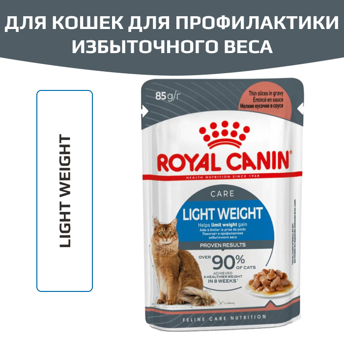 Royal Canin Light Weight влажный корм для кошек для профилактики избыточного веса, кусочки в соусе.