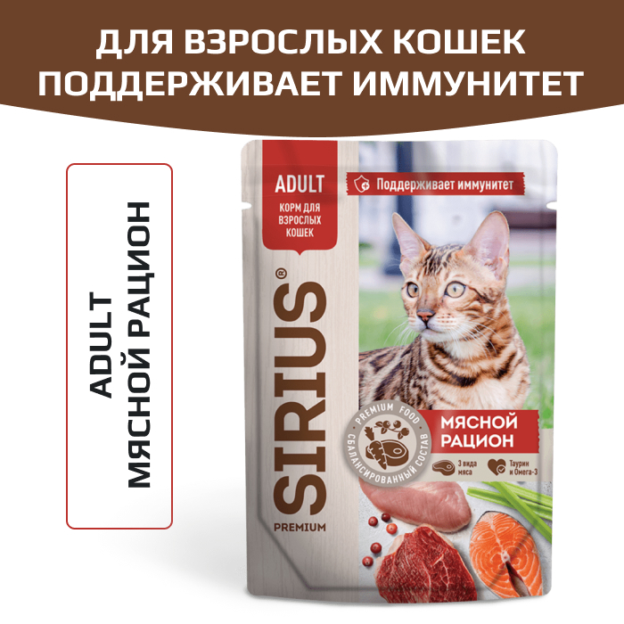 SIRIUS Premium пауч для кошек мясной рацион.
