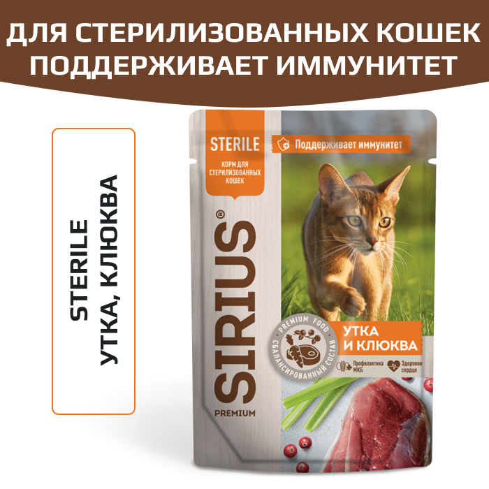 SIRIUS Premium пауч для стерилизованных кошек утка с клюквой.