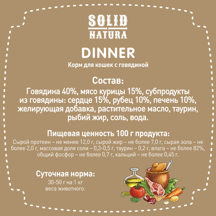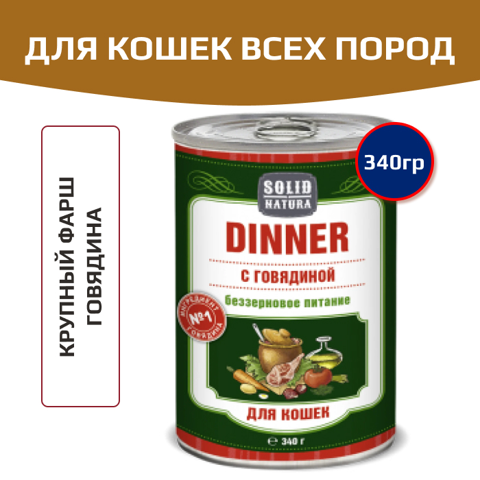 Solid Natura Dinner консервы для кошек всех пород, говядина.