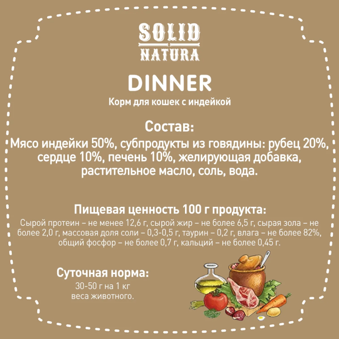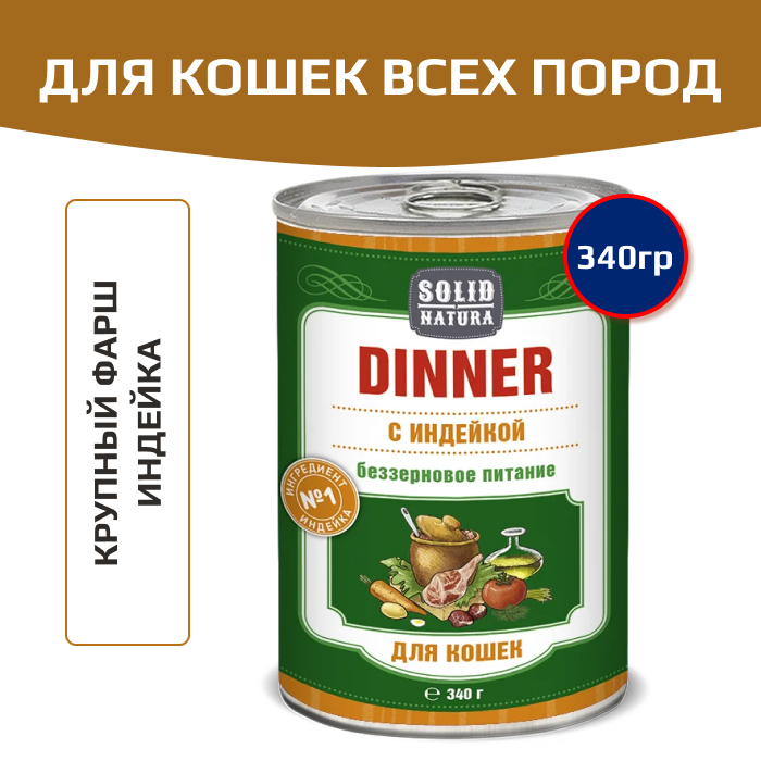 Solid Natura Dinner консервы для кошек всех пород, индейка.