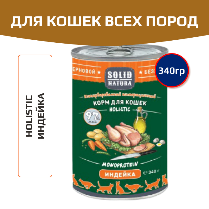 Solid Natura Holistic консервы для кошек всех пород, индейка.