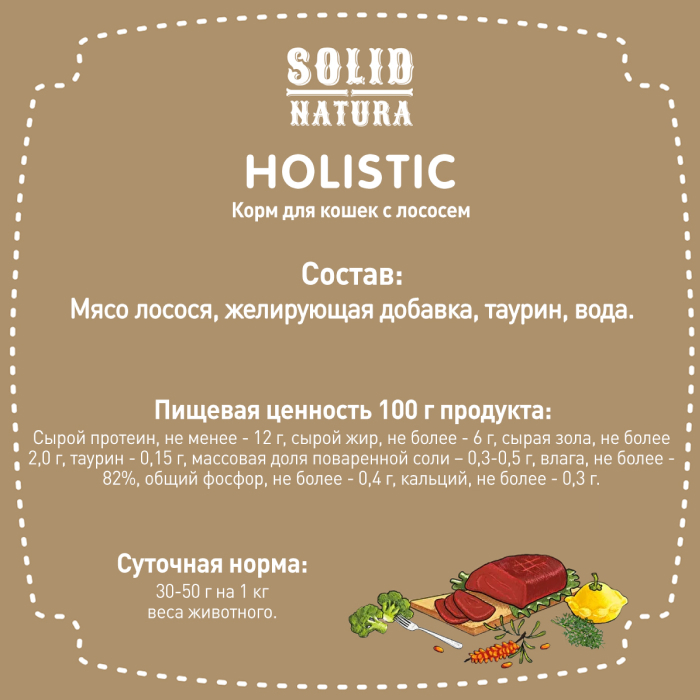 Solid Natura Holistic консервы для кошек всех пород, лосось.