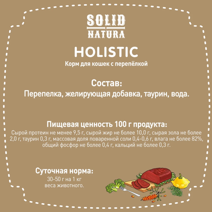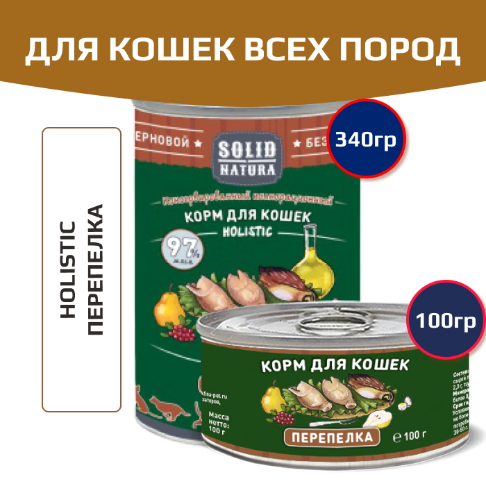 Solid Natura Holistic консервы для кошек всех пород, перепелка.