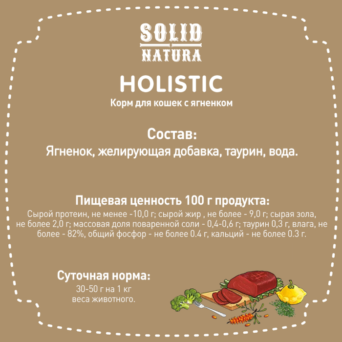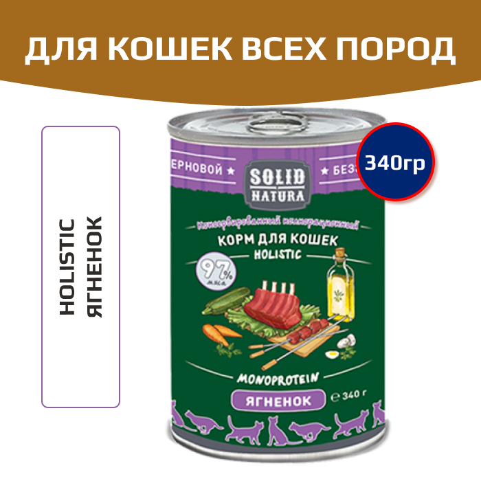 Solid Natura Holistic консервы для кошек всех пород, ягненок.
