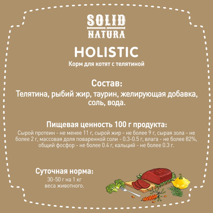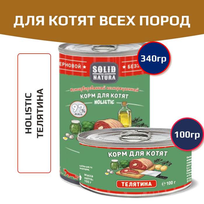 Solid Natura Holistic консервы для котят всех пород, телятина.