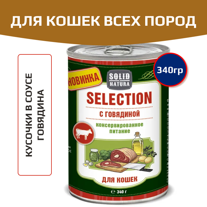 Solid Natura Selection консервы для кошек всех пород, говядина.