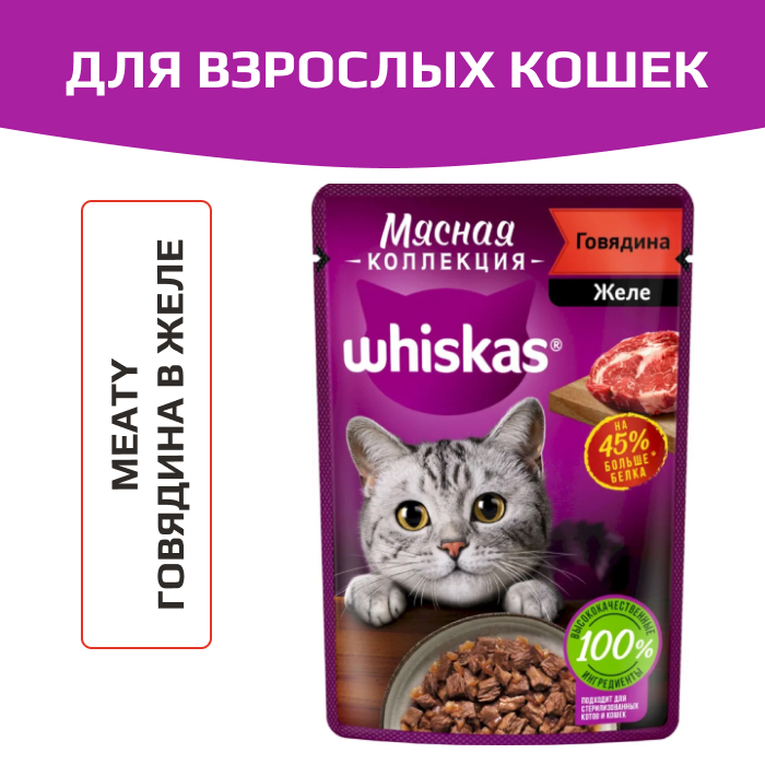 Whiskas Meaty корм консервированный для взрослых кошек говядина.