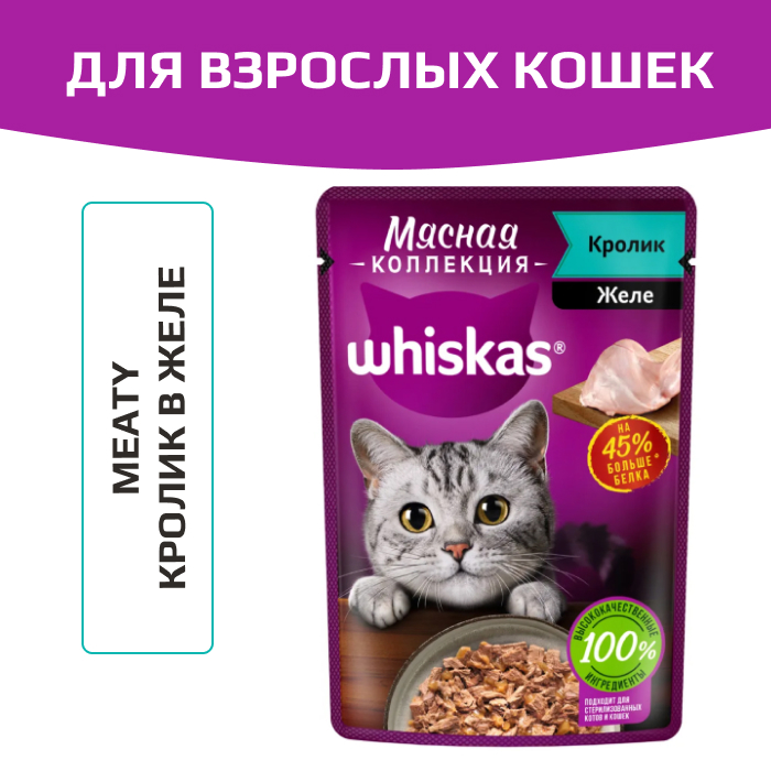 Whiskas Meaty корм консервированный для взрослых кошек кролик.