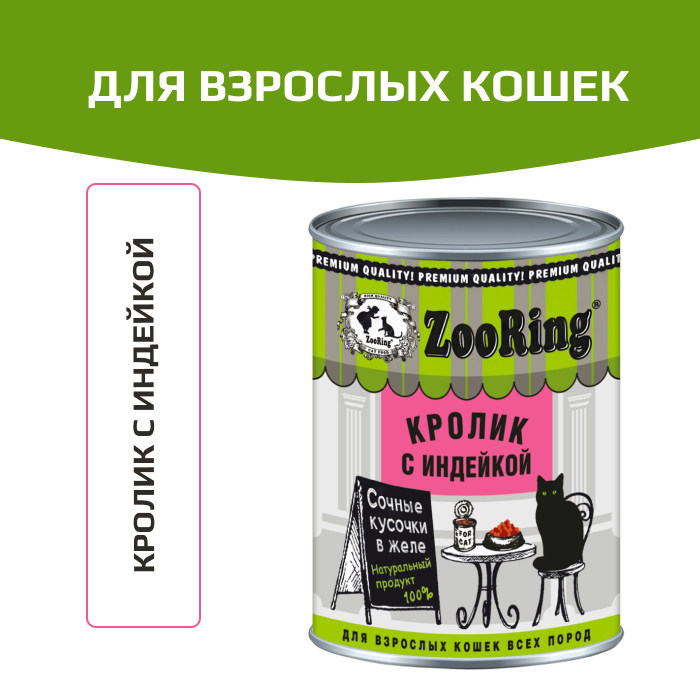 ZooRing Кусочки в желе корм консервированный для взрослых кошек кролик с индейкой.
