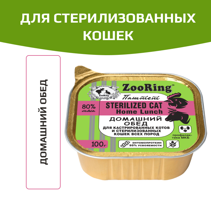 ZooRing консервы для кастрированных котов и стерилизованных кошек паштет с львинкой домашний обед.