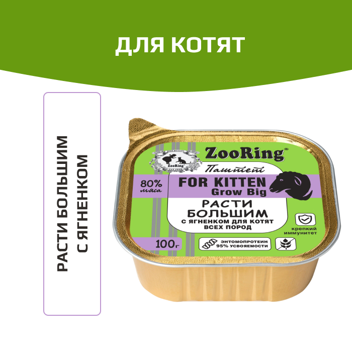 ZooRing консервы для котят всех пород паштет с львинкой расти большим с ягненком.