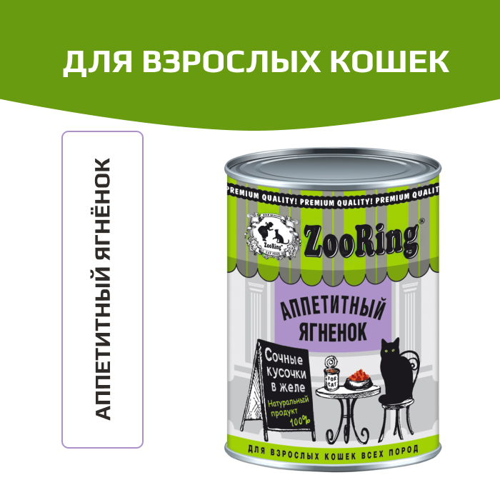 ZooRing консервы для взрослых кошек кусочки в желе аппетитный ягнёнок.