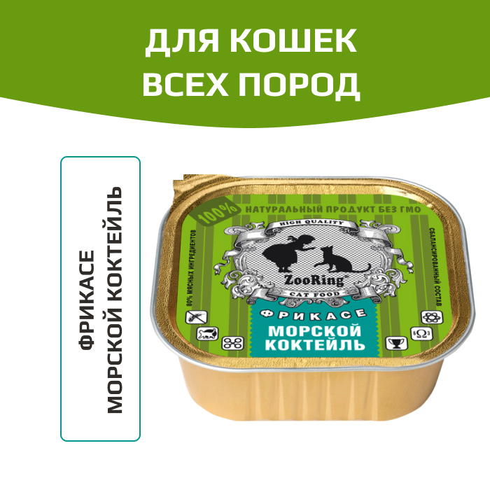 ZooRing корм консервированный для кошек паштет Морской коктейль.
