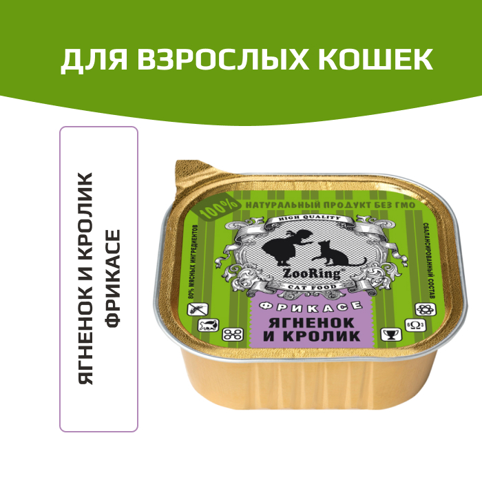 ZooRing корм консервированный для кошек паштет Ягненок и кролик.