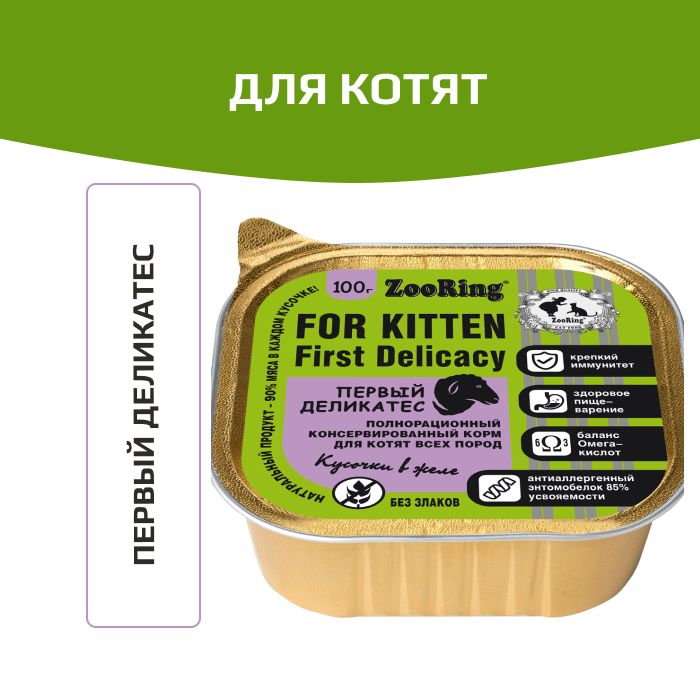 ZooRing корм консервированный для котят кусочки в желе с львинкой Первый деликатес.
