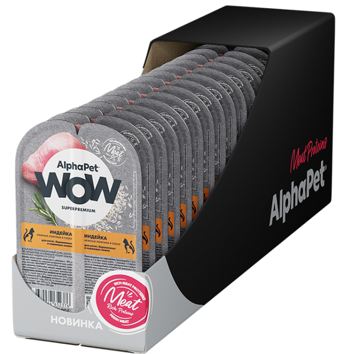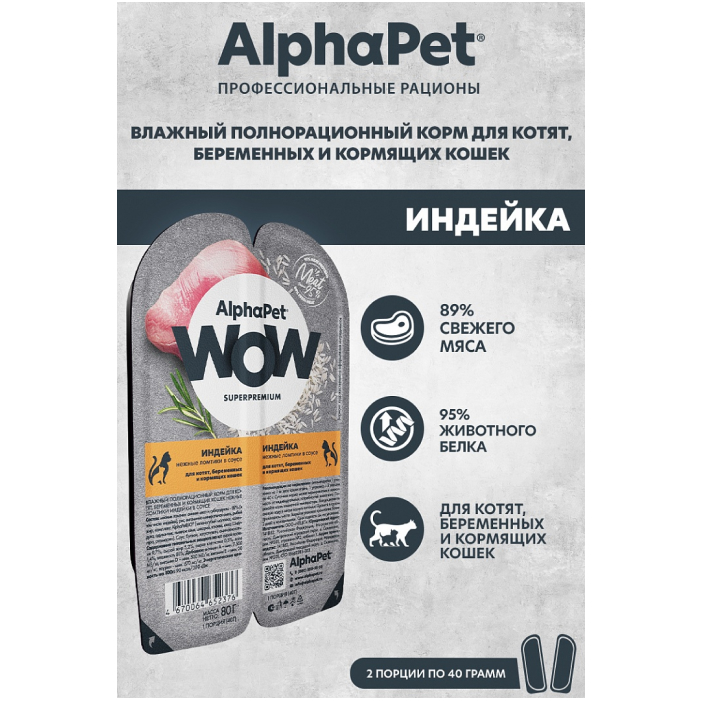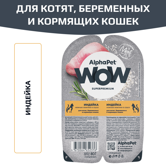 AlphaPet WOW Superpremium влажный полнорационный корм для котят, беременных и кормящих кошек нежные ломтики индейки в соусе.