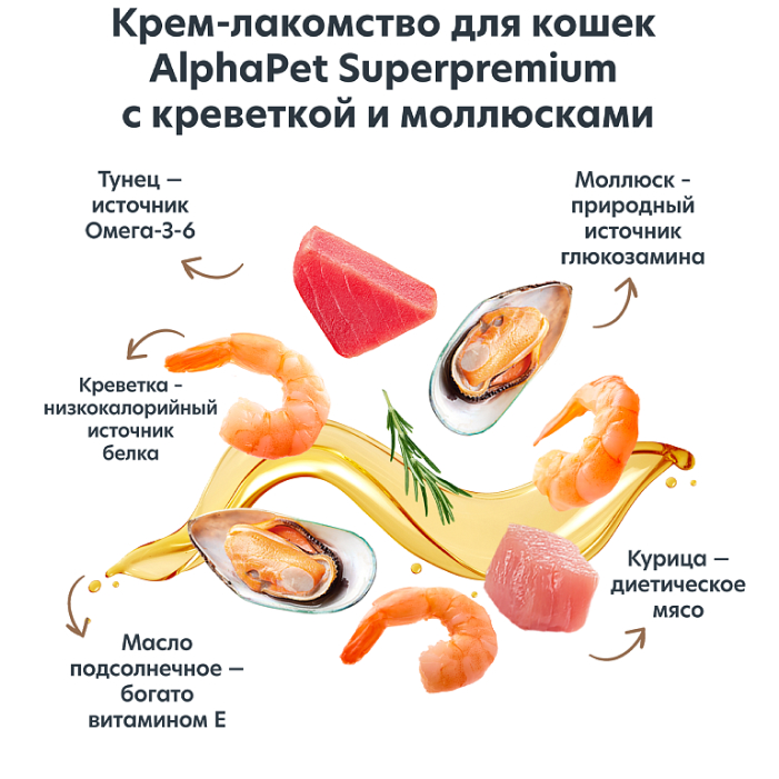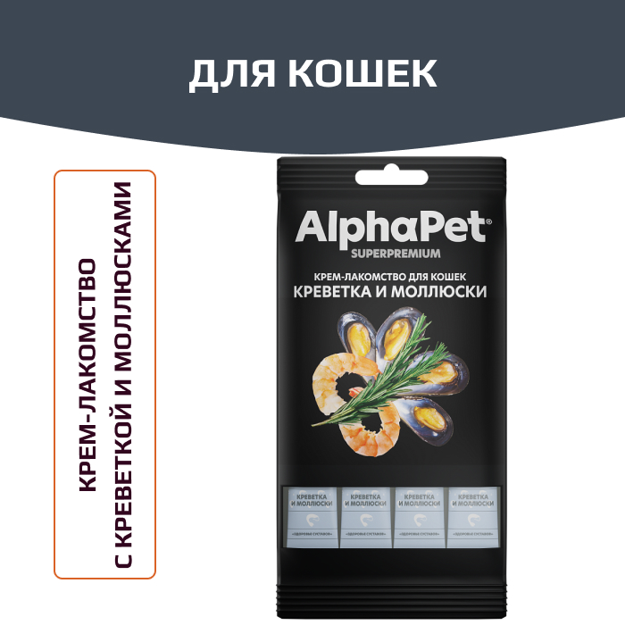 AlphaPet Superpremium крем-лакомство для кошек с креветкой и моллюсками.