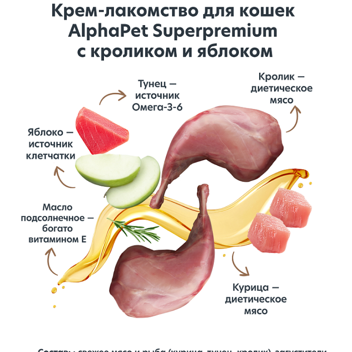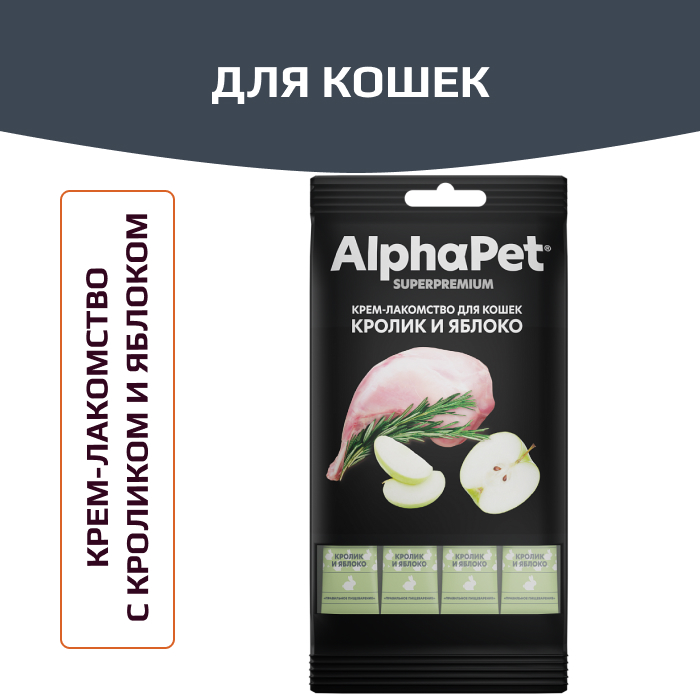 AlphaPet Superpremium крем-лакомство для кошек с кроликом и яблоком.