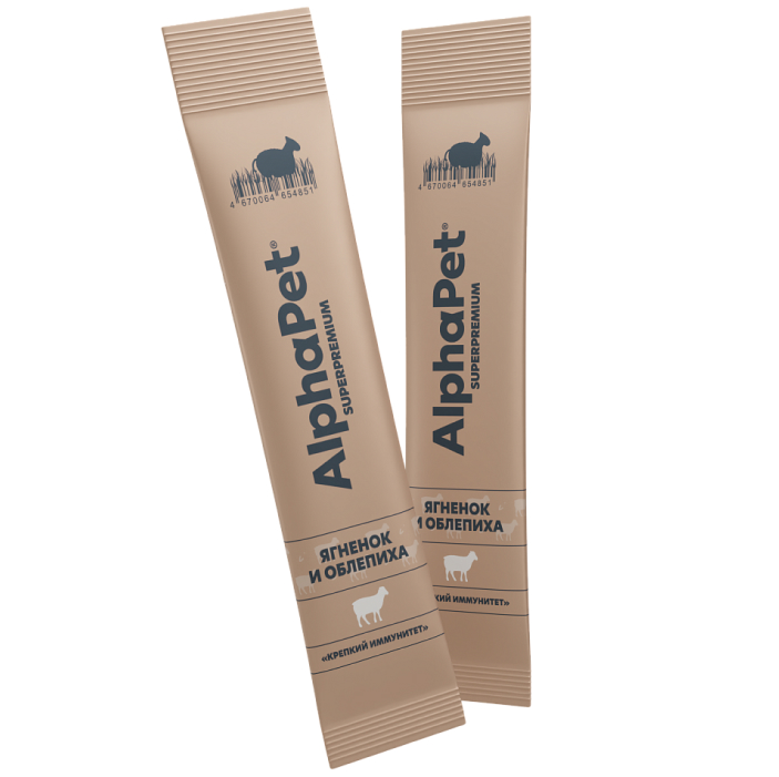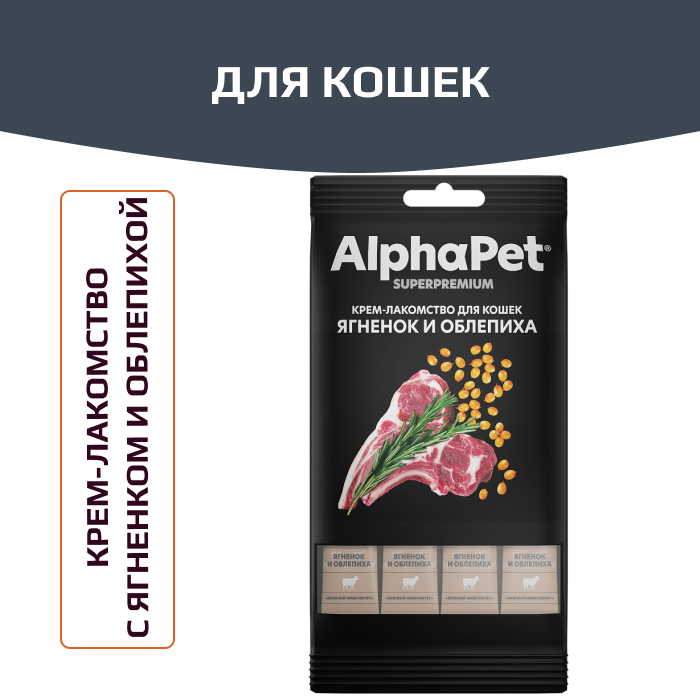 AlphaPet Superpremium крем-лакомство для кошек с ягненком и облепихой.