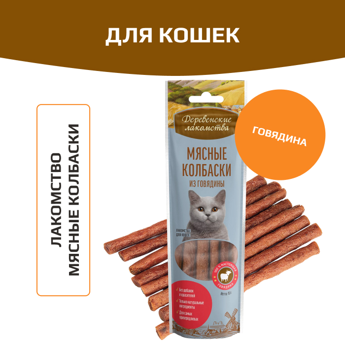 Деревенские лакомства мясные колбаски из говядины для кошек.