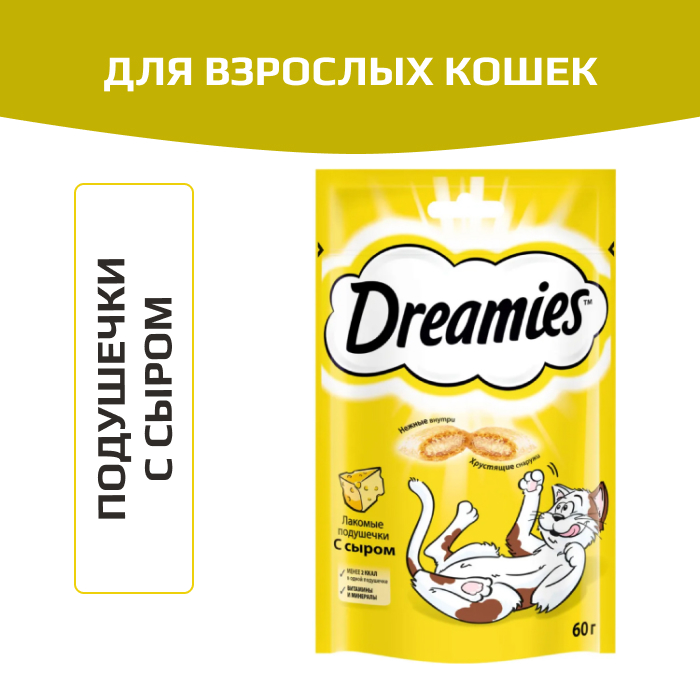 Dreamies – это лакомство, хрустящее снаружи и невероятно нежное внутри. В состав Dreamies входит большое количество важных для кошки питательных веществ. Но, тем не менее, мы всегда рекомендуем давать это лакомство в качестве дополнения к полноценному, сбалансированному корму.