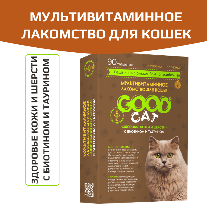 GOOD Cat Мультивитаминное лакомcтво для кошек, здоровье шерсти и кожи.
