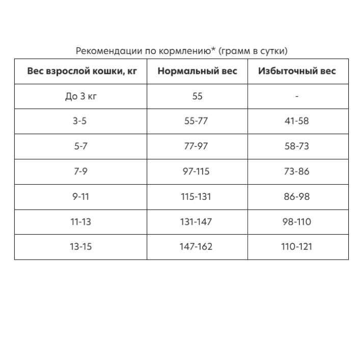 Суточная норма может варьироваться в зависимости от индивидуальных потребностей питомца Всегда держите свежую воду в миске вашего питомца.