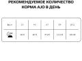 Норма кормления может меняться в зависимости от активности, размера и условий жизни животного. Разделите дневную норму на несколько кормлений и всегда давайте свежую воду.
