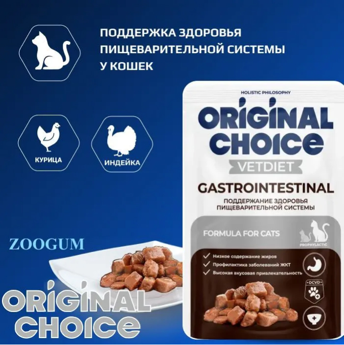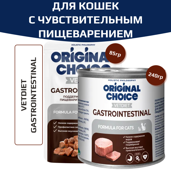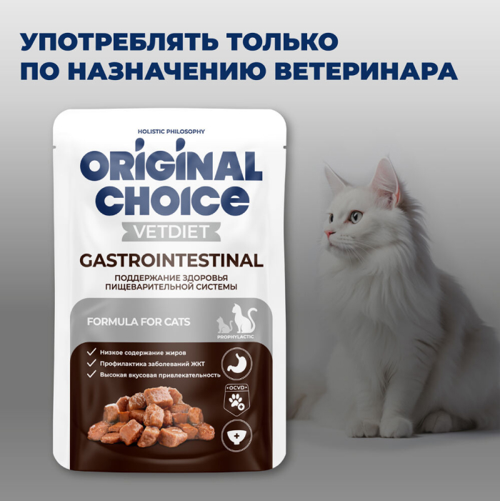 Original Choice Vetdiet Gastrointestinal влажный диетический корм для взрослых кошек с чувствительным пищеварением.
