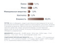 витамин Д3 – 154 МЕ, железо – 8,0 мг, йод – 0,33 мг, медь – 1,3 мг, марганец – 1,3 мг, цинк – 22,1 мг, триполифосфат натрия – 0,5 г. белки – 7,1 г, жиры – 2,9 г, зола – 1,5 г, клетчатка пищевая – 1,2 г, влага – 82,0 г, калий – 0,18 г, натрий – 0,15 г, незаменимые жирные кислоты Омега-3 (ЭПК/ДГК) - 0,09 г.