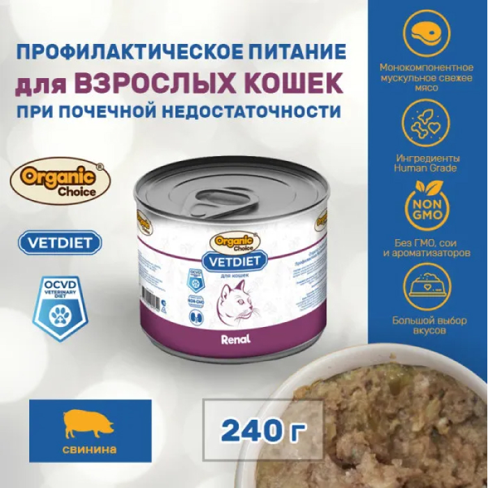 Organic Сhoice VET Renal влажный корм для взрослых кошек, для профилактики болезней почек.