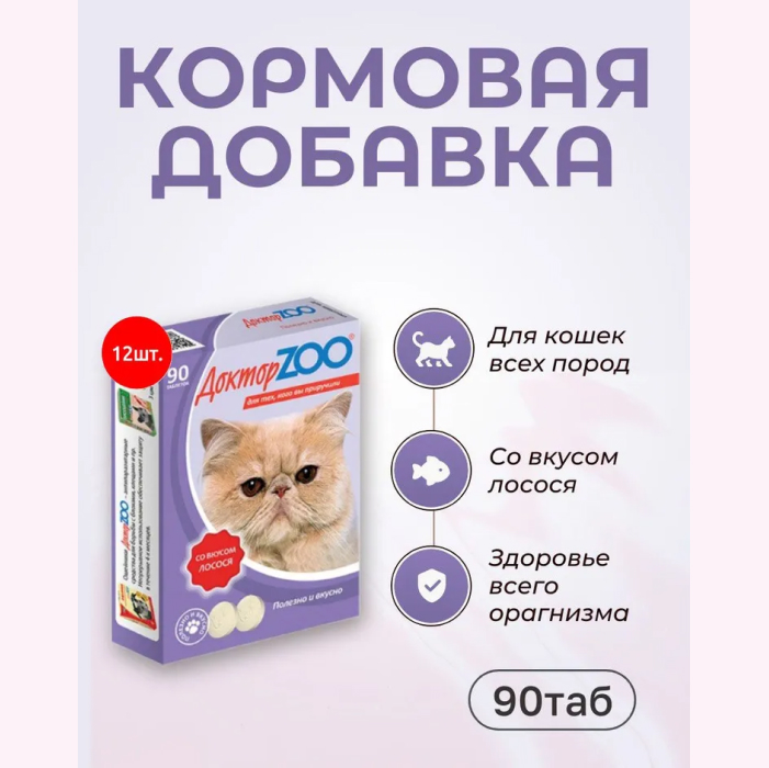 Доктор ZOO Витамины для кошек со вкусом лосося.
