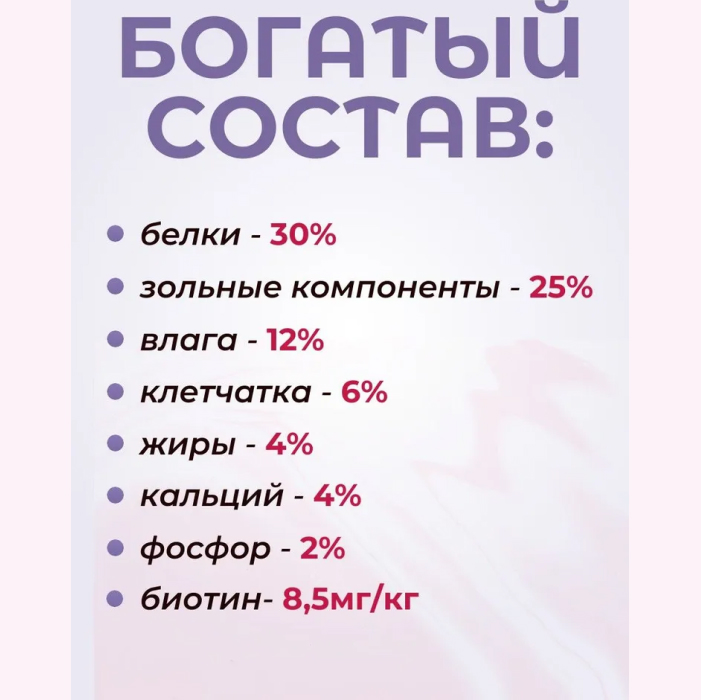 Формула лакомства включает комплекс витаминов и минеральных веществ, которые стимулируют работу всех систем организма.