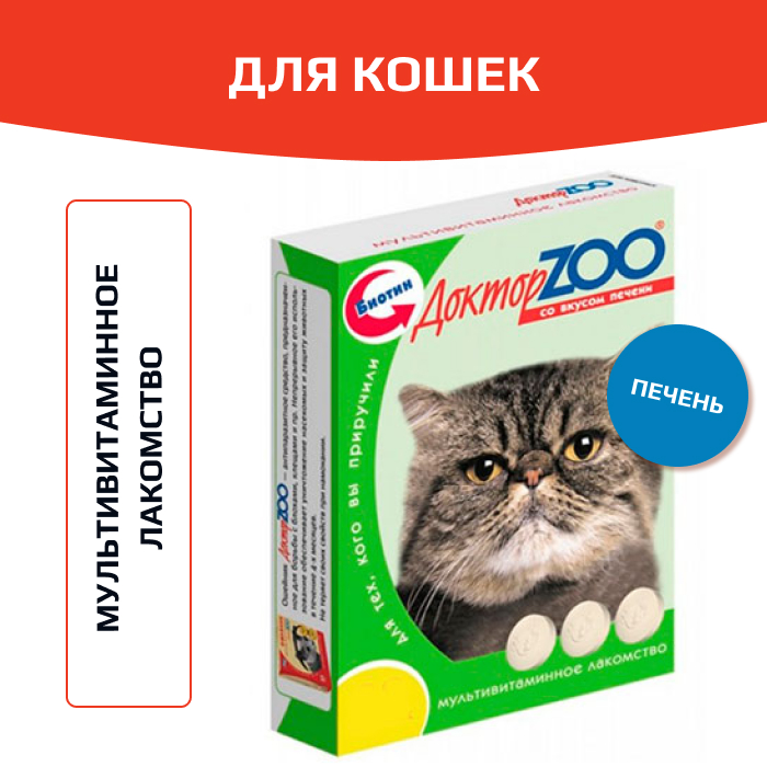 Доктор ZOO Витамины для кошек со вкусом печени.