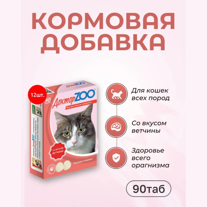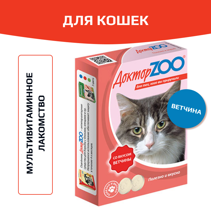 Доктор ZOO Витамины для кошек со вкусом ветчины.