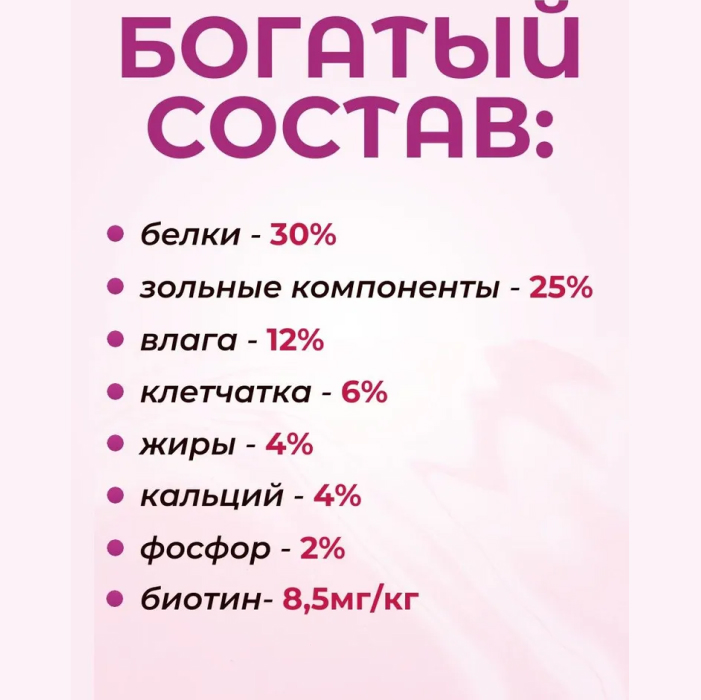 Формула лакомства включает комплекс витаминов и минеральных веществ, которые стимулируют работу всех систем организма.