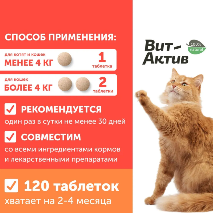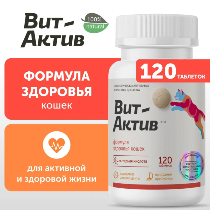Вит-Актив Формула здоровья кошек биологически активная кормовая, 120 таб.