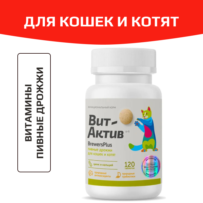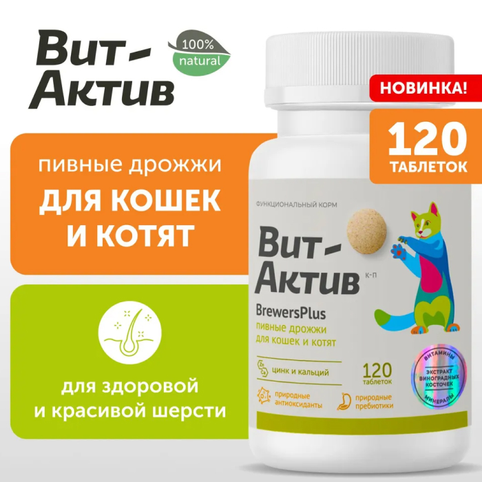 Вит-Актив Пивные дрожжи для кошек и котят биологически активная кормовая добавка, 120 таб.