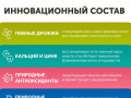 • Пивные дрожжи инактивированные • Лактат кальция • Хелат цинка • Экстракт виноградных косточек (природные антиоксиданты) • Порошок топинамбура (природные пребиотики)