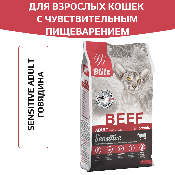 Blitz Sensitive Beef Adult Cats All Breeds корм сухой для взрослых кошек с говядиной.