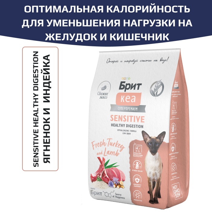 Brit Care Cat Sensitive Healthy Digestion корм сухой для кошек с чувствительным пищеварением, с ягнёнком и индейкой.