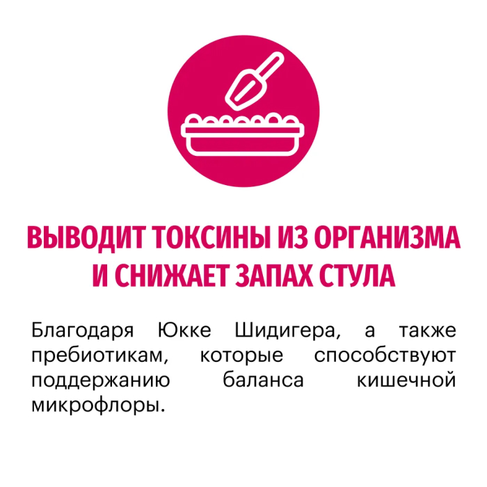 Благодаря Юкке Шидигера, а так же пробиоткам и пребиотикам , которые способствуют поддержанию баланса кишечной флоры.