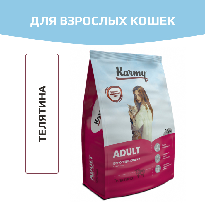 Karmy Adult корм сухой для взрослых кошек телятина.