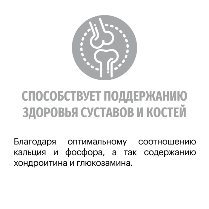 У кошек крупных пород, подверженных высоким нагрузкам, благодаря оптимальному соотношению кальция и фосфора, а также содержанию хондроитина и глюкозамина.